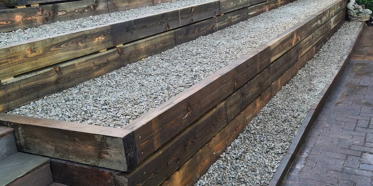 Sleepers create durable, rustic raised flower beds that enhance garden structure, improve drainage, and simplify planting.